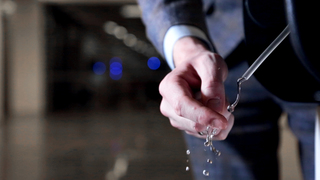 Ist ein Film nicht eine bloße Aneinanderreihung von Fotografien, und ist eine Fotografie nicht nur ein Einzelbild aus einem Film? Genau diesen Fragen widmet sich die Installation „25Hz“ von Stephan Neuendank und Tommy Scheer, indem sie die Grenze zwischen Film und Fotografie verschwimmen lässt. Die Frequenzen einer Sinuswelle und die Frameraten einer Filmkamera werden exakt aufeinander abgestimmt. Genauer beschrieben versetzt ein Sinuston mit 25Hz einen Wasserstrahl in Schwingung. Dieser wird durch eine Kamera, die mit 25 Bildern pro Sekunde aufnimmt, gefilmt. Durch die gleiche Frequenz scheint der Wasserstrahl in Form einer Sinuskurve eingefroren, während Bewegungen im Videohintergrund wie gewohnt ablaufen. Die Installation „25Hz“ bewegt sich an der Schnittstelle zwischen Video, Fotografie und Installation; zwischen Kunst, Physik und Maschinenbau.