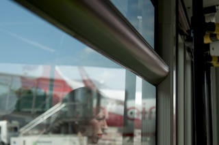 „Da ich auch schon vom Dortmunder Flughafen aus geflogen bin, war mir das Umfeld nicht unbekannt. Besonders die indirekte Verbindung zwischen den einzelnen Bereichen des Flughafens durch transparente Glasscheiben ist mir bereits zu Beginn aufgefallen“, meint Sara Treppner zu ihrer Serie Airport Reflection. Und tatsächlich ergeben sich ganz vielfältige Blickachsen durch die Staffelung der Glasscheiben hindurch. „Die Fotos spiegeln die ständige Veränderung der Situationen wider, die von den Fluggästen selbst oftmals gar nicht wahrgenommen wird.“ Warteräume füllen sich sukzessive zur Abflugzeit und leere Gänge werden nach Ankunft einer Maschine abrupt belebt. Wie auf einer Bühne verändern sich ständig die Szenerien am Flughafen.