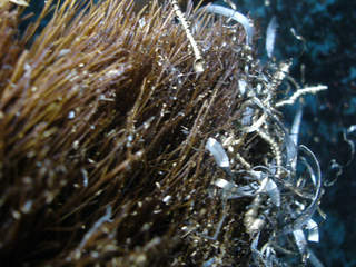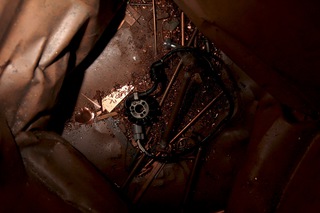 Viele Studierende haben bei ihrem Einblick in die Labore und Werkstätten aus dem vermeintlich Trivialen ganz besondere und überraschende Motive herausgearbeitet. Vielleicht ist die Serie von Stephanie Agnes Schröder sogar am radikalsten, denn sie fokussiert auf das, was wirklich Abfall ist. Sie entwickelt jedoch daraus Bilder einer bezaubernden Ästhetik. Auf dem Grunde diverser Recyclingbehälter fand sie Metallschrott, spiralförmige Späne und fragile Bruchstücke von Glas und transformierte den Inhalt fotografisch zu etwas, das teilweise eher an ein schillerndes Korallenriff erinnert als an eine Mülltonne.