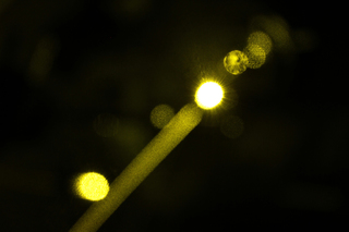 Streulicht verschiedener Lichtquellen findet mittels Unschärfe in die Fotografien von Stefanie Muno. Die kreisförmigen Erscheinungen gelangen erst durch einen eigentlich fehlerhaft gesetzten Fokusbereich zu ihrer strahlend hellen und großen Gestalt. Dabei mögen sie im entfernten Sinne – je nach Farbigkeit und Konstellation im Bildraum – auch an soziale Beziehungen von Menschen erinnern. Einige treten als Einzelgänger auf, andere sind gerne zu zweit und verschmelzen miteinander, sammeln sich in gleichgesinnter Menge, und wieder andere mögen es bunt. Stefanie Munos Lichtpunkte entwickeln stets einen eigenen Charakter, welcher uns in kontrastreichen Kompositionen auf dunklem Grund mit Leuchtkraft und Farbigkeit ganz unbestreitbar in den Bann zieht.