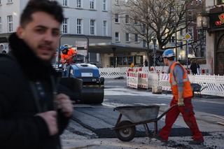 Das Ruhrgebiet ist eine Metropole, die mobil und allzeit beschäftigt ist. Doch die Menschen hier werden auf ihren Wegen ständig ausgebremst. Das Problem sind Baustellen: nervig, zeitintensiv, ein Dorn im Auge. Trotz allem lohnt sich ein genauer Blick, der eine eigene kleine Welt, mit bunten Schildern und ungeschriebenen Regeln offenbart. Aus dem Grau und Braun der Baustoffe blitzen bunte Neonfarben. Die farbenfrohe Kleidung kontrastiert die schwere Arbeit der Bauarbeiter*innen. Die Fotoserie entstand in dem Seminar "Stadtansichten" und ist in der gleichnamigen Fotozeitung zu sehen.
