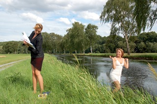 Sina Weber machte sich auf, Freunde zu befragen, was der Traum ihres Lebens sei. Sie fragte schlicht »Was wünschst du dir?« und als Antwort bekam sie oft Berufswünsche wie »ein reisender Geograf sein«. Aber auch andere Wünsche wie »mehr Zeit mit Freunden verbringen« wurden genannt. Sina berichtet: »Es war spannend zu erfahren womit sich Studenten so beschäftigen, wer eher die berufliche Zukunft ersehnt und wer sich Persönliches wie einen eigenen Hund haben wünscht.« Bei der Befragung kamen auch sehr abstrakte Wünsche zum Vorschein. Einer, der wohl sehr poetisch klingen wollte, wünschte sich »eine Frau so schön wie ein Regenbogen und einen Topf voll Gold«. Sina Weber entwickelte viele Ideen, wie sie das in einem Bild darstellen könne. Allerdings scheiterte es letztendlich an der Beziehung des Mannes zur erträumten Frau, sodass dieses märchenhafte Bild unserer Fantasie überlassen bleibt.